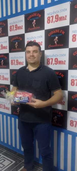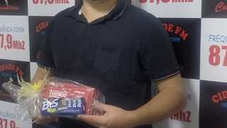 Rafael pai do Davi, são de Novo Horizonte do Norte, veio retirar o kit páscoa da Banowisk Construção e piscinas sorteado no Viola Prosa e Café, parabens