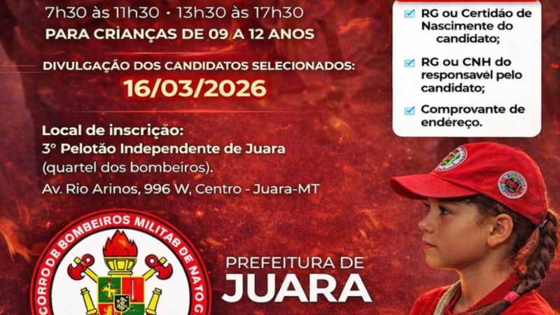 Inscrições abertas para o Projeto Social Bombeiros do Futuro 2026 em Juara